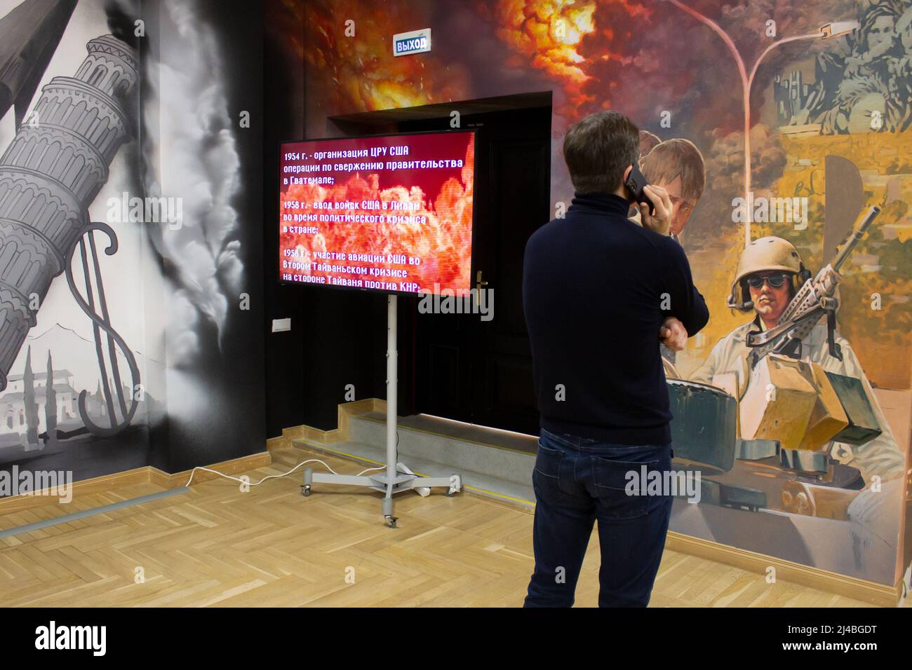 Moscow Russia 12th Apr 2022 An Artwork Seen On The Wall At The State Central Museum Of Contemporary History Of Russia Where The Nato Chronicle Of Cruelty Exhibition Is Being Hosted According
